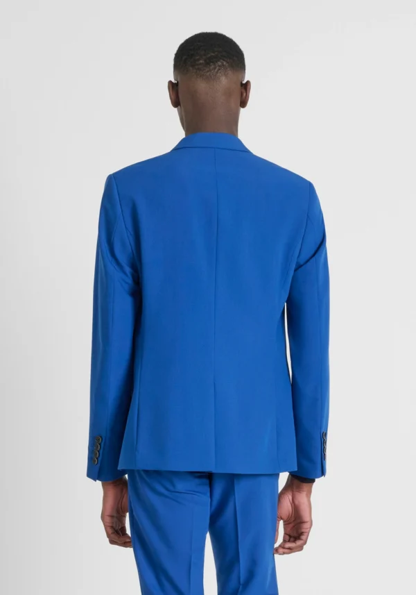 Elegante giacca monopetto dal taglio classico in tinta unita con vestibilità aderente.Realizzata con un rever stretto, chiusura a due bottoni e quattro bottoni al fondo manica. Due tasche con patta sul davanti, taschino lato cuore e uno spacco sul retro completano il design di questa giacca senza tempo.
