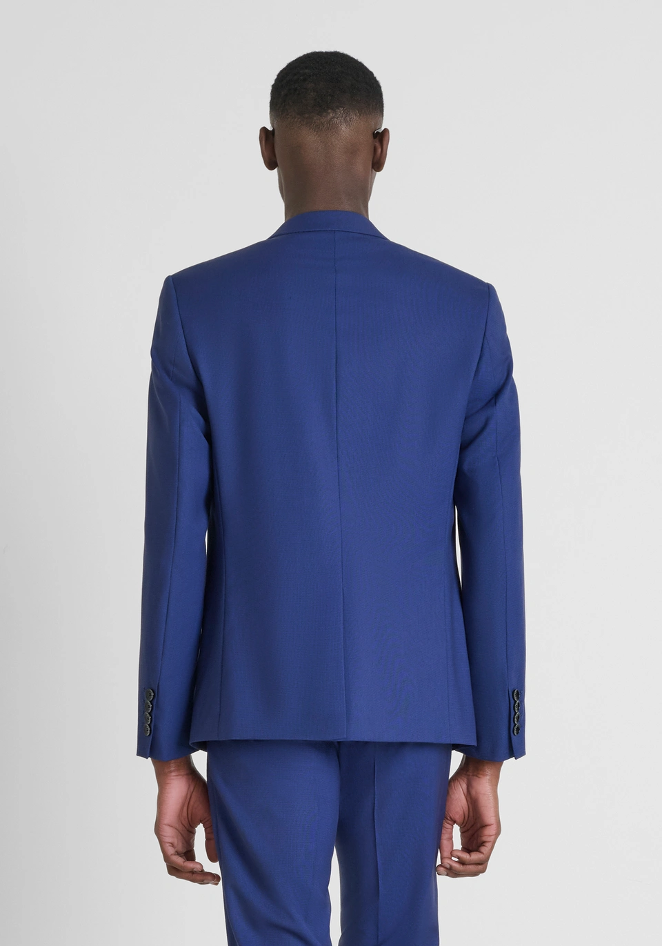 Giacca slim fit realizzata in tessuto microtramato firmata Antony Morato. Indossata risulta confortevole grazie alla viscosa elastica con la quale è realizzata. Colore vibrante e luminoso, chiusura a due bottoni e spacco sul retro. Due tasche a filetto sulla parte frontale e un taschino.