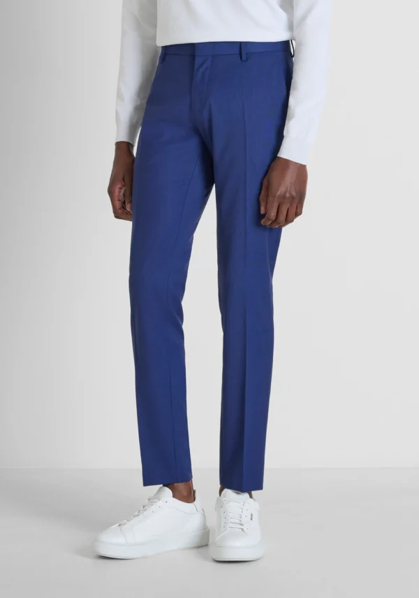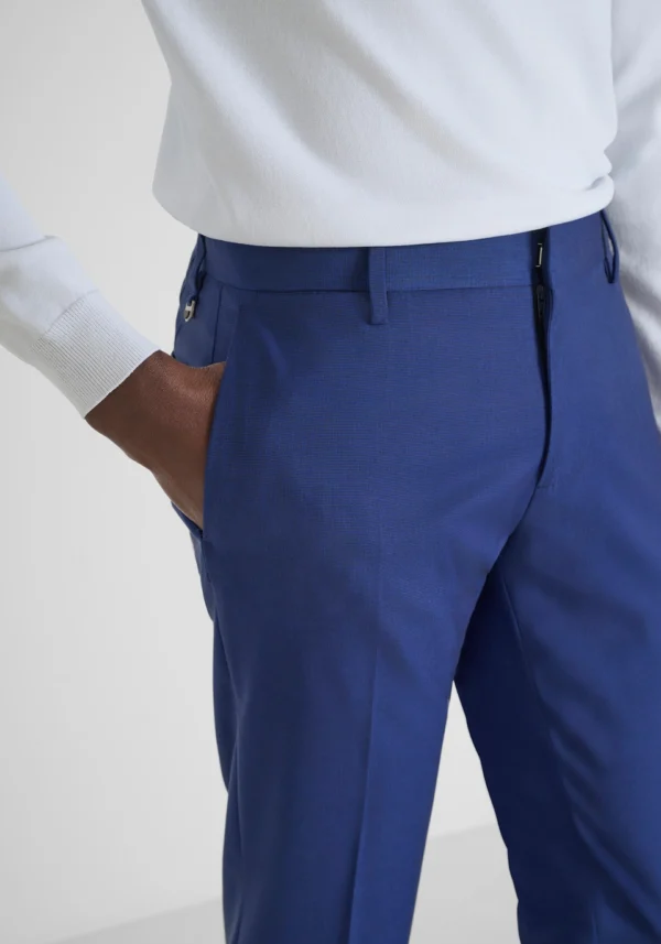 Pantaloni modello “Bonnie” realizzati in tessuto misto viscosa elasticizzato. Vestibilità slim, dettaglio con pince lungo la gamba. Due tasche a filo laterali e due tasche sul retro con bottone. Chiusura con zip e bottone a scomparsa.