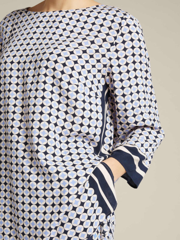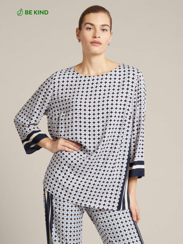 In tela di viscosa, fibra proveniente da fonti di legno di coltivazioni sostenibili e responsabili, scende oltre i fianchi senza segnare. Data la leggerezza del tessuto, è perfetta per la stagione in arrivo.