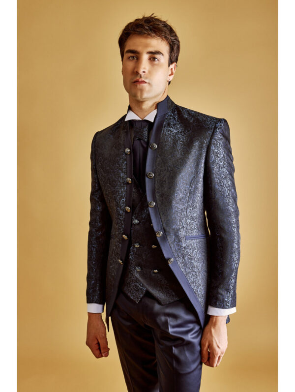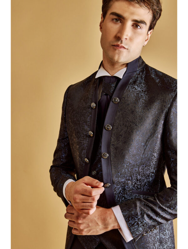 Giacca Damascato 5 bottoni, collo coreana.